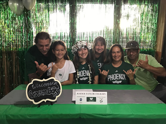 Uncle Rob Joy, an ardent Green Bay Packers fan, put his team visor on Colburn’s head in a photo when she was 3 for a photo. Fast-forward 14 years, and the Kamehameha senior is heading to the Midwest after signing a national letter of intent to play soccer for Wisconsin-Green Bay.
